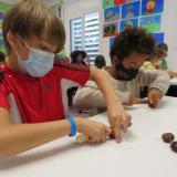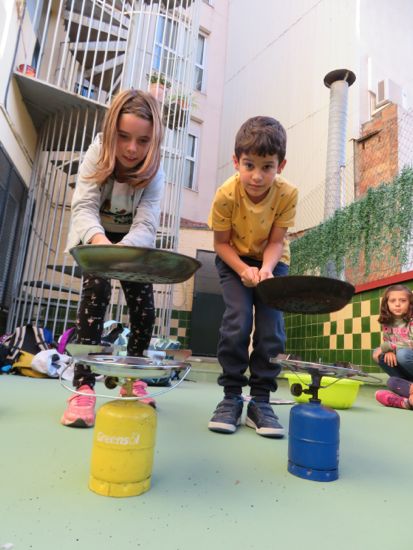 Com és tradició, cada any aprenem a coure castanyes. Les posem en remull, li fem el tall just i calculat, i les posem a coure al foc, amb la curiosa paella foradada que tan bé va per coure.
