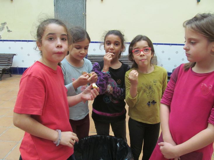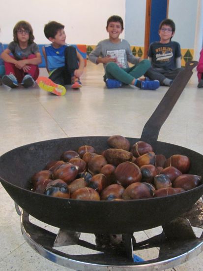 Com que la tardor és temps de castanyes, vam fer castanyes seguint el mètode “tradicional”: remullar, fer el tall, coure-les al foc mentre van petant, embolicar amb paperines i... bon profit! Vam menjar castanyes i vam convidar a tothom qui les va voler provar. La veritat és que van quedar molt bones. Ara ja sabem com es fan i podem preparar-ne a casa o allà on vulguem.