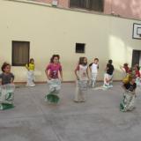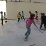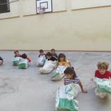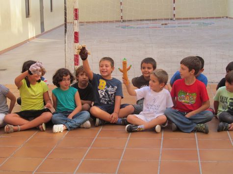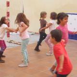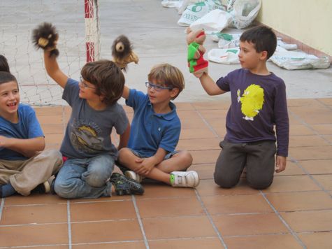 Els dimecres a la tarda, fem tres grups barrejant nenes i nens de 1r i 2n. Cada trimestre canviem de grup; en aquest hi ha el grup dels Mamuts, el de les Fletxes i el dels Arcs. Per començar fem unes sessions més lúdiques. Així, les fotografies que veieu són de la primera sessió en la qual un grup va preparar uns jocs; un altre, una dansa i el tercer, uns titelles. Abans d’acabar la tarda, ens vam trobar tots al pati i vam ensenyar a la resta allò que havíem preparat.