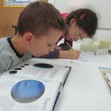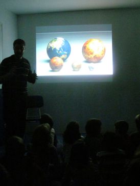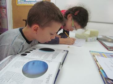 Hem estudiat el Sistema Solar a l’àrea de Coneixement del Medi. Després de conèixer i contrastar quatre nocions sobre l’estudi de l’espai, vam anar al Planetari Municipal, on el Marc ens va apropar una mica més cap a aquest apassionant món. Més treball a classe i, quan ja teníem els conceptes clars, vam començar un treball d’investigació per parelles, una parella estudia el Sol, l’altra Mercuri, la Lluna, les constel·lacions...