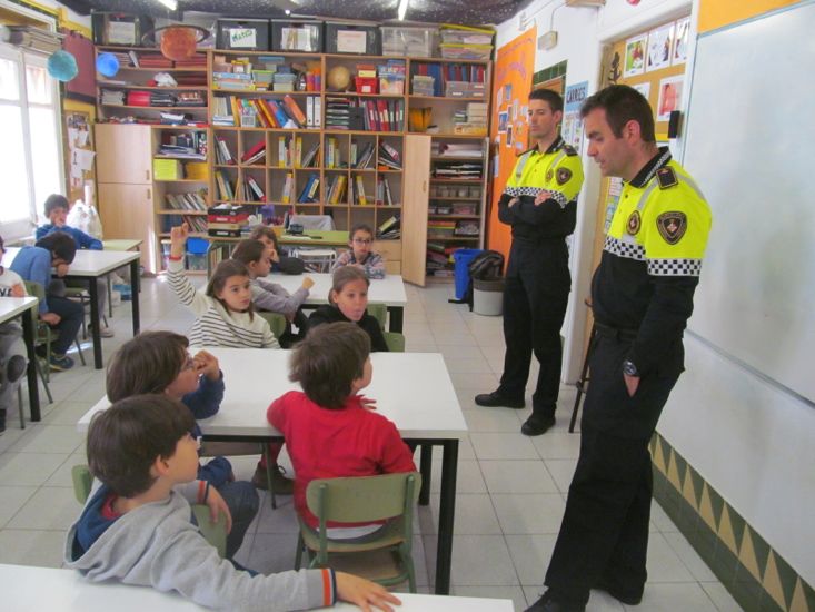 Van venir a l’escola dos policies de la Guàrdia Urbana, l’un es deia Àlex i l’altre, Javi. Ens van explicar el que és el mobiliari urbà, i ara ja ho sabem. És el que hi ha al carrer i que és de tothom i hem de respectar. Si no respectéssim els bancs, es trencarien, els fanals no funcionarien..., i seria un caos total.