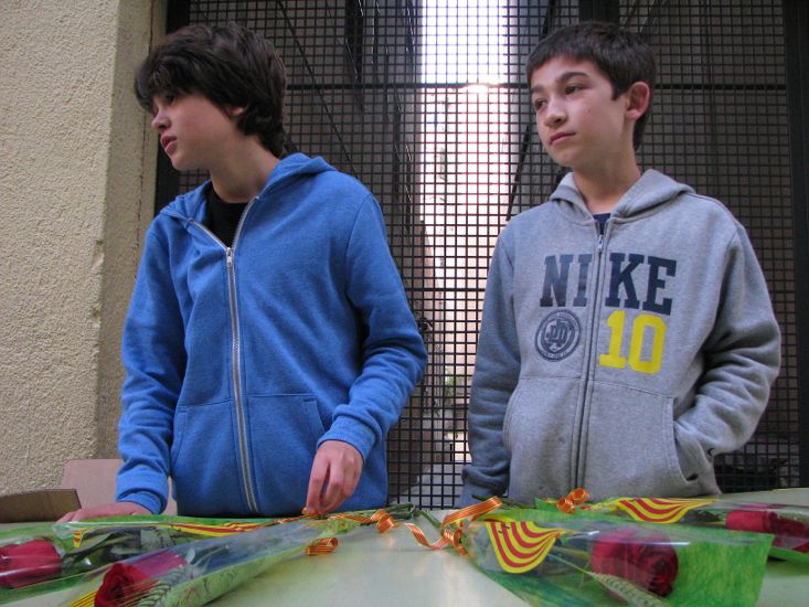 Aprofitant la diada de Sant Jordi, dia de roses, llibres i emocions, els nens i nenes de sisè van preparar dues paradetes de venda de roses, una davant de Parvulari i l’altra davant de Primària. La jornada va ser intensa i els resultats, engrescadors. Els diners aconseguits se sumen als que porten recollint des de principi de curs, per poder fer el fabulós viatge de fi de curs que els espera en terres franceses.